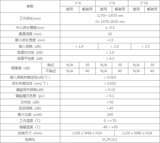 全光构造;低插入损耗;高宽带传输;通道隔离度高;高稳定性及高可靠性